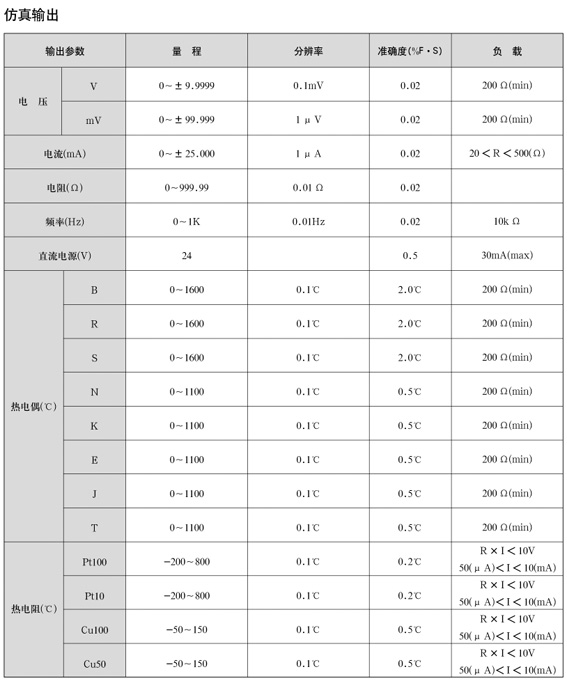 * 直接鍵入熱電偶(熱電阻)℃值,顯示并輸出對應的mV(Ω)值,無須再查分度表.